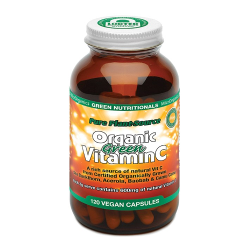 Pure Plant-Source Organic Green Vitamin C is a blend of pure, certified organically grown Sea Buckthorn, Acerola, Baobab and Camu Camu all rich in natural vitamin C and synergistic nutrients.