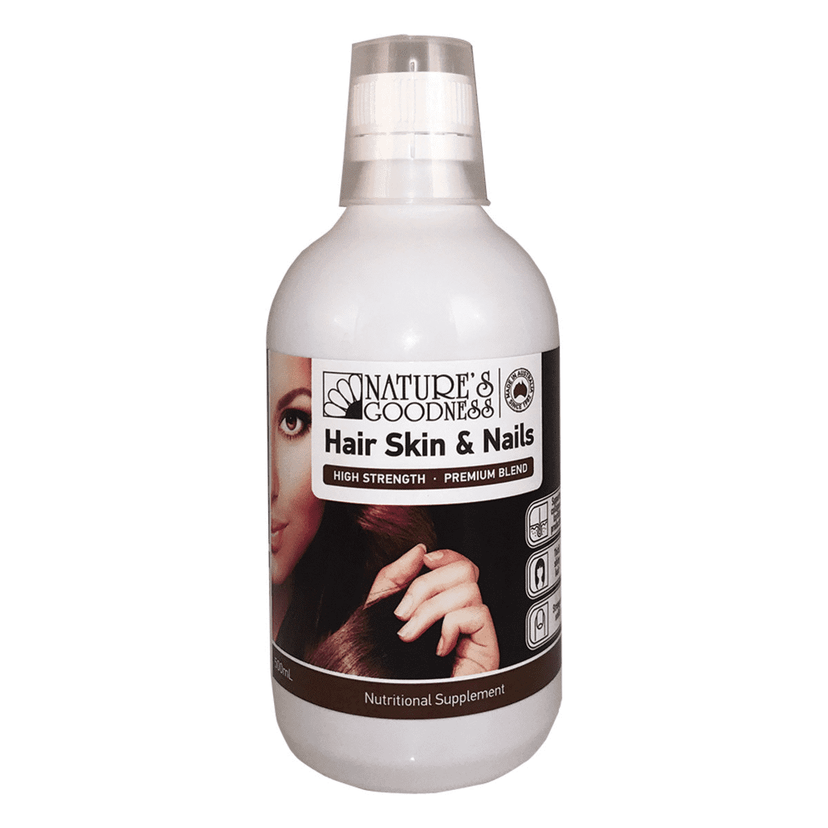 Nature’s Goodness Hair, Skin & Nails liquid is a premium blend of collagen, vitamin C, silica, zinc, biotin and more which are supported by the latest scientific research to promote thick and shiny hair, radiant skin, and strong nails.