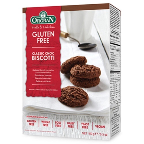 Orgran's Classic Choc Biscotti are produced with the finest gluten free ingredients and have been inspired by traditional European artisan bakery techniques. The specially selected ingredients combine to provide the most exquisite baked gluten free whole biscotti without the addition of dairy, eggs or animal fats. Free from gluten, wheat, dairy, egg, nut, soy, yeast and GMO's. No added MSG and suitable for those following a Vegan/Vegetarian diet. Kosher.